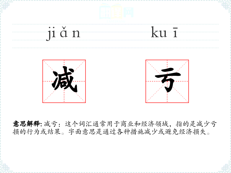 减亏:这个词汇通常用于商业和经济领域,指的是减少亏损的行为或结果。字面意思是通过各种措施减少或避免经济损失。