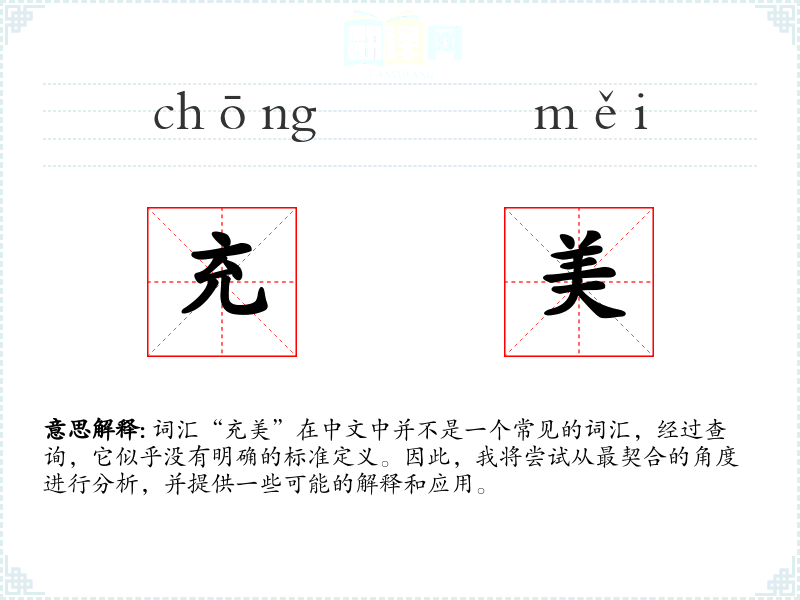 由于“充美”不是一个标准词汇,我们可以尝试从字面意思来解释: