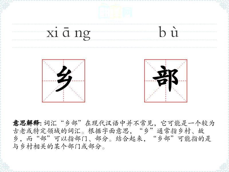 - 理解:“乡部”是一个具有历史和文化背景的词汇,虽然在现代使用较少,但在理解乡村治理和传统文化方面具有重要意义。
