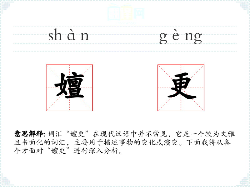 “嬗”字古已有之,源自《说文解字》,意为逐渐变化。“更”字则有更替、改变之意。两者结合,形成了“嬗更”这一词汇,强调变化的过程性和渐进性。
