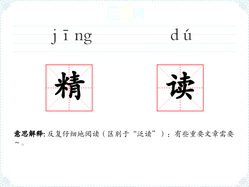 反复仔细地阅读(区别于“泛读”):有些重要文章需要~。
