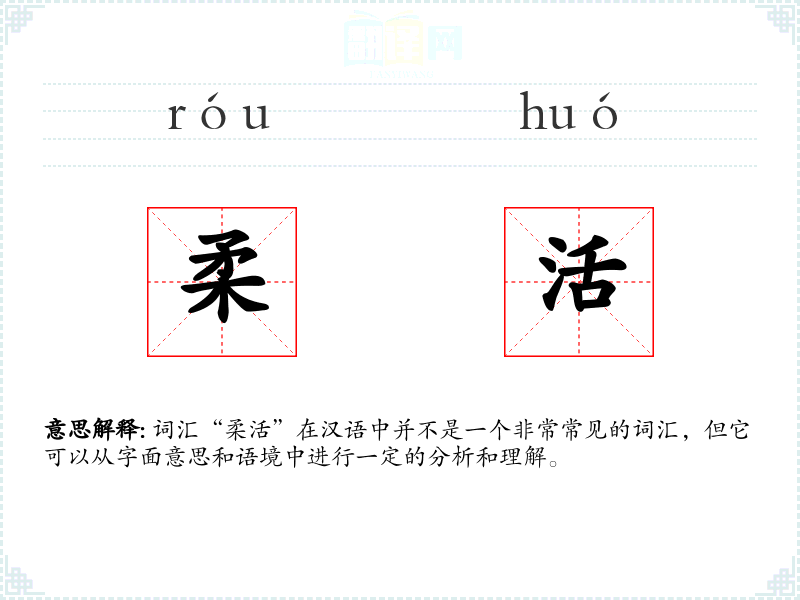 词汇“柔活”在汉语中并不是一个非常常见的词汇,但它可以从字面意思和语境中进行一定的分析和理解。