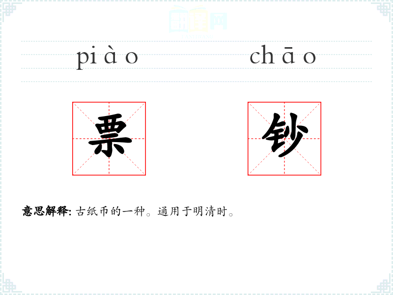 票钞的分字解释