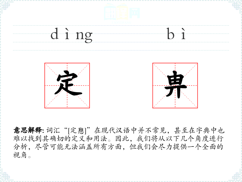 词汇“[定戁]”在现代汉语中并不常见,甚至在字典中也难以找到其确切的定义和用法。因此,我们将从以下几个角度进行分析,尽管可能无法涵盖所有方面,但我们会尽力提供一个全面的视角。