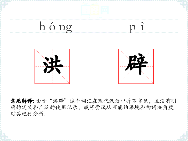 由于“洪辟”这个词汇在现代汉语中并不常见,且没有明确的定义和广泛的使用记录,我将尝试从可能的语境和构词法角度对其进行分析。