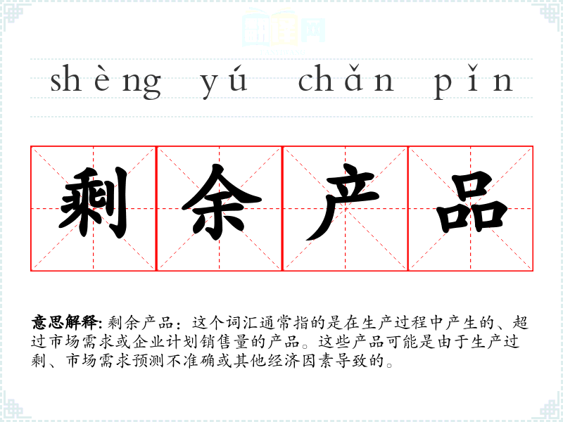 剩余产品:这个词汇通常指的是在生产过程中产生的、超过市场需求或企业计划销售量的产品。这些产品可能是由于生产过剩、市场需求预测不准确或其他经济因素导致的。