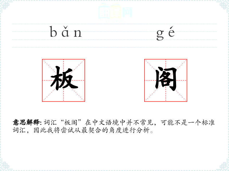 词汇“板阁”在中文语境中并不常见,可能不是一个标准词汇,因此我将尝试从最契合的角度进行分析。