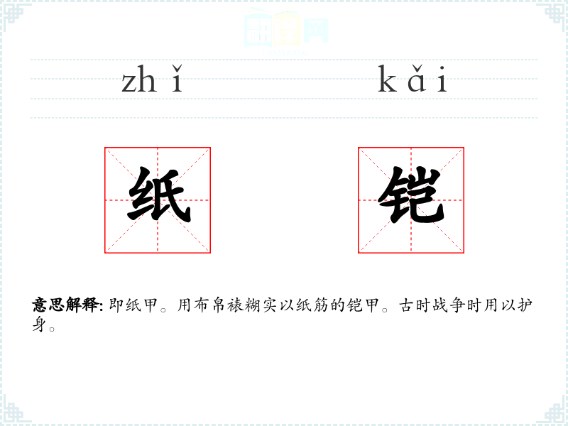 纸铠的分字解释