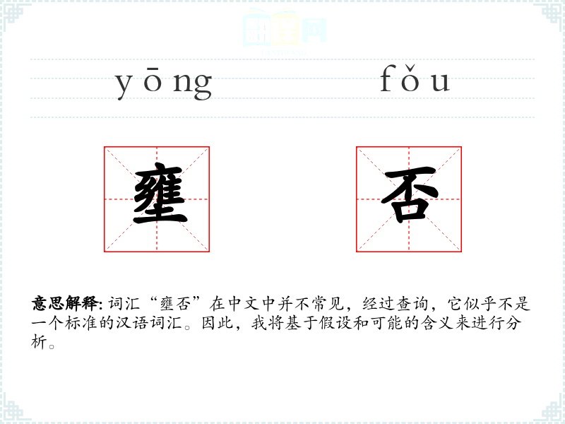 假设“壅否”是一个由“壅”和“否”组成的复合词,我们可以推测其含义。