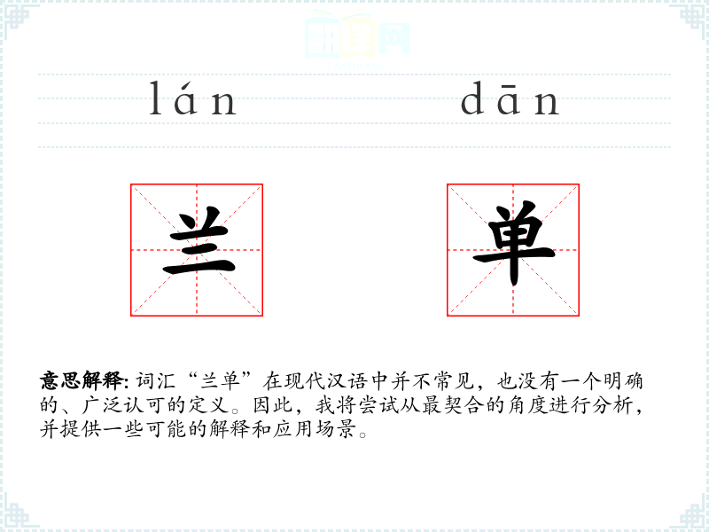 由于“兰单”不是一个标准词汇,我们可以尝试从字面意思来解释: