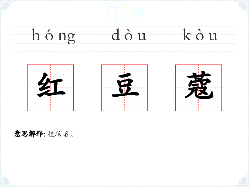 红豆蔻的分字解释