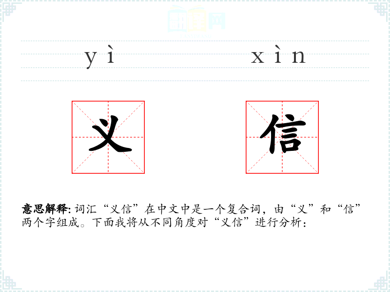 - 词源:“义”和“信”都是古代汉语中的常用词汇,历史悠久。