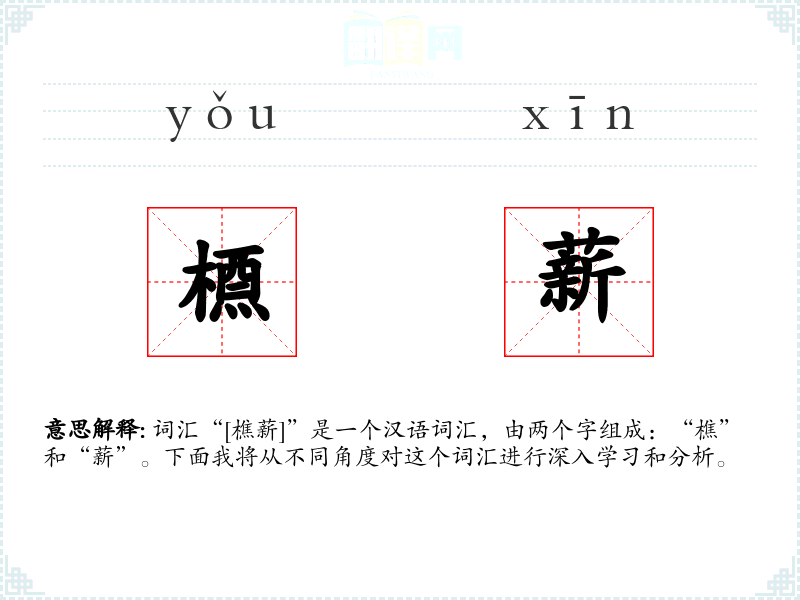 词汇“[樵薪]”是一个汉语词汇,由两个字组成:“樵”和“薪”。下面我将从不同角度对这个词汇进行深入学习和分析。