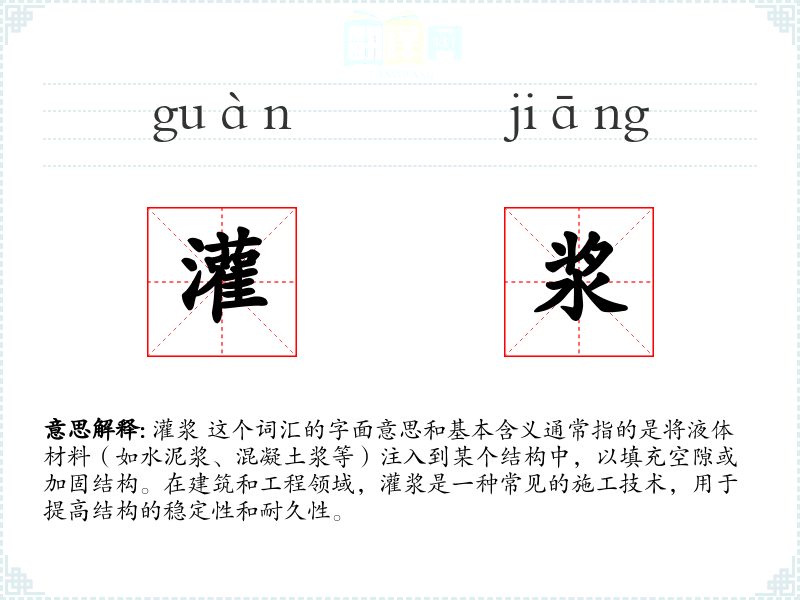 灌浆 这个词汇在建筑和工程领域具有重要的技术含义,同时在文学和口语中也有丰富的比喻和象征意义。了解和掌握这个词汇,不仅有助于理解专业知识,还能在日常表达中增加词汇的丰富性和准确性。