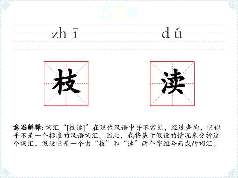 词汇“[枝渎]”在现代汉语中并不常见,经过查询,它似乎不是一个标准的汉语词汇。因此,我将基于假设的情况来分析这个词汇,假设它是一个由“枝”和“渎”两个字组合而成的词汇。