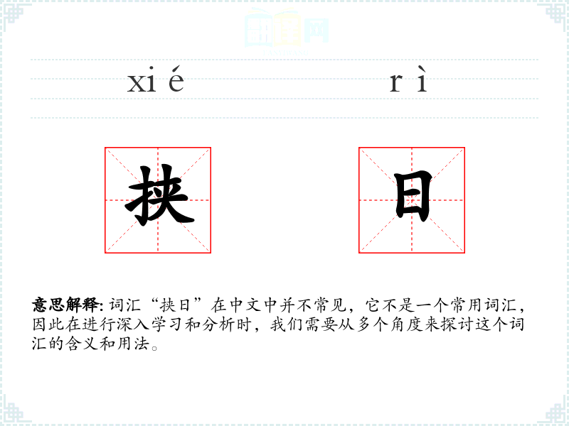 词汇“挟日”在中文中并不常见,它不是一个常用词汇,因此在进行深入学*和分析时,我们需要从多个角度来探讨这个词汇的含义和用法。