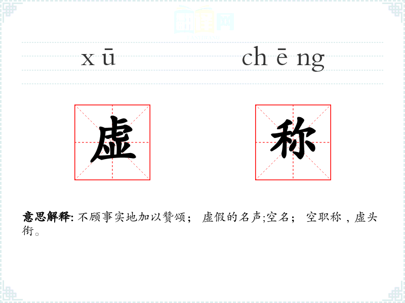 不顾事实地加以赞颂; 虚假的名声;空名; 空职称﹐虚头衔。