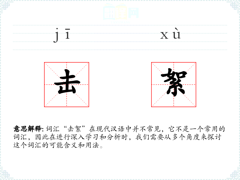 词汇“击絮”在现代汉语中并不常见,它不是一个常用的词汇,因此在进行深入学*和分析时,我们需要从多个角度来探讨这个词汇的可能含义和用法。