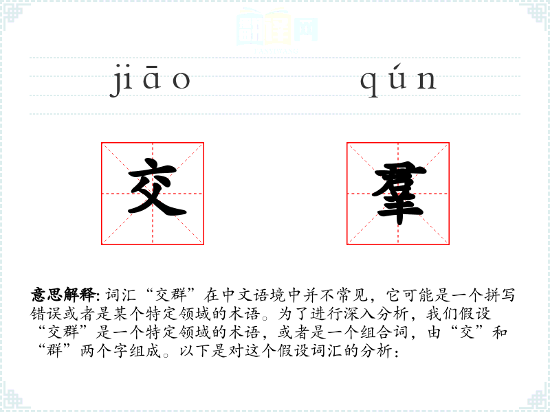 - “交群”作为一个假设的词汇,展示了语言的灵活性和创造性。在实际的语言学习和表达中,理解和运用这样的词汇可以帮助我们更准确地描述和理解社会互动。
