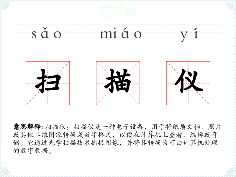 "扫描仪"的意思解释、扫描仪是什么意思由翻译网汉语词典查词提供。