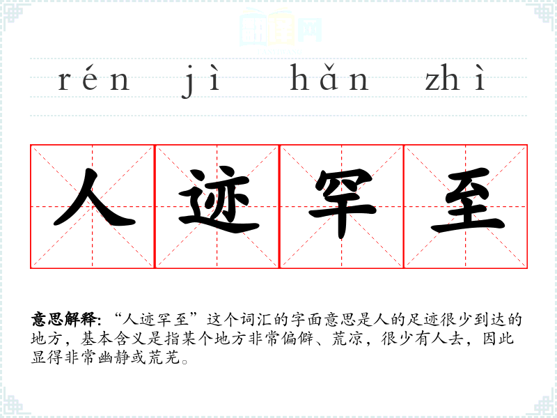 "人迹罕至"的意思解释、人迹罕至是什么意思由翻译网汉语词典查词提供。