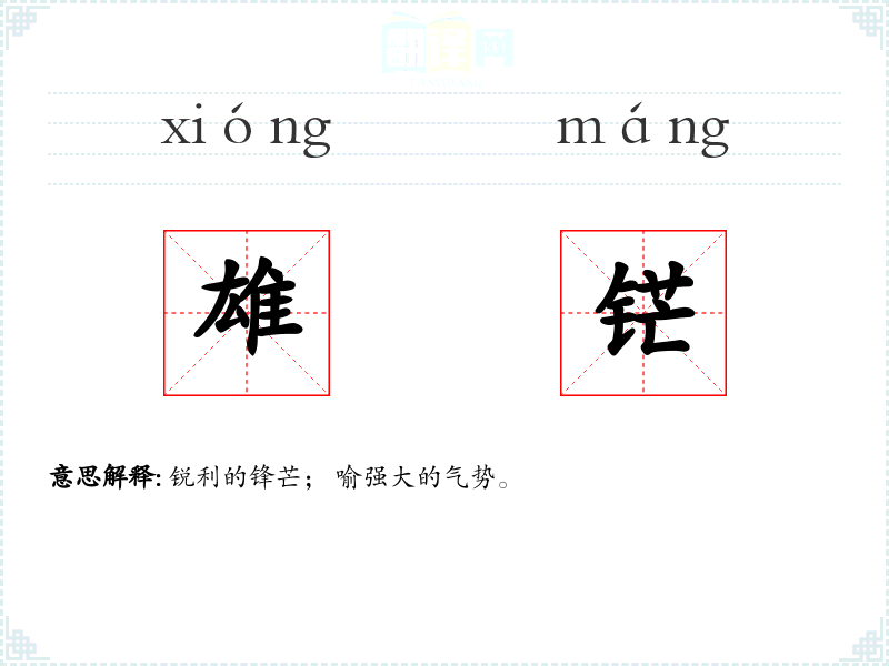 雄铓 的拼音
