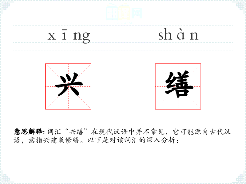 词汇“兴缮”在现代汉语中并不常见,它可能源自古代汉语,意指兴建或修缮。以下是对该词汇的深入分析: