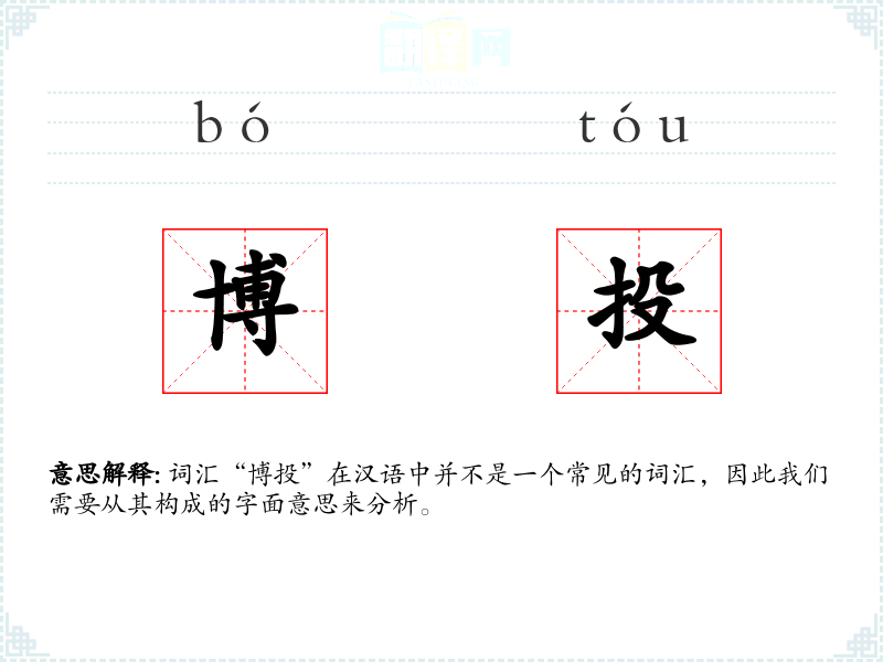 词汇“博投”在汉语中并不是一个常见的词汇,因此我们需要从其构成的字面意思来分析。
