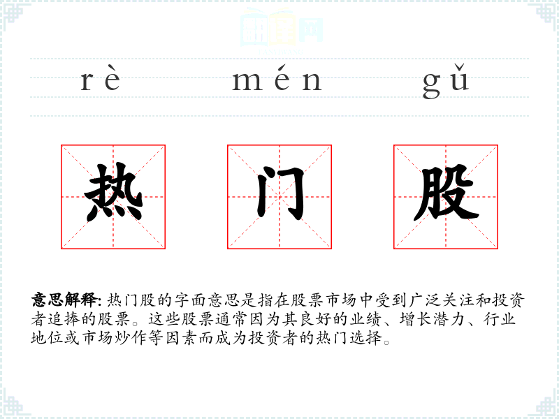 在不同语言中,“热门股”可能有不同的表达方式,但其核心含义相似,都是指市场上受到广泛关注的股票。例如,在英语中可能是“hot stock”或“top pick”。