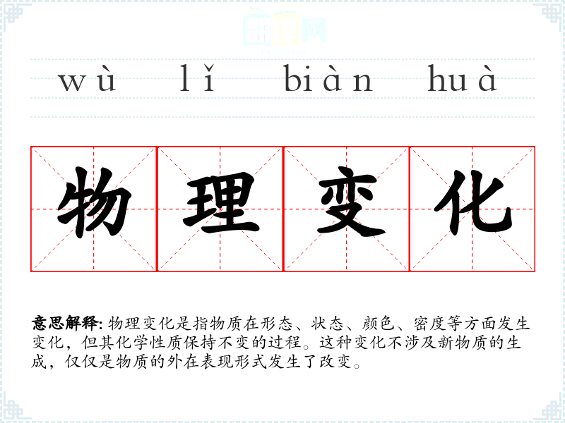 在不同语言中,物理变化的概念基本一致,但其表达方式可能有所不同。例如,在西班牙语中,物理变化可以表达为“cambio físico”。