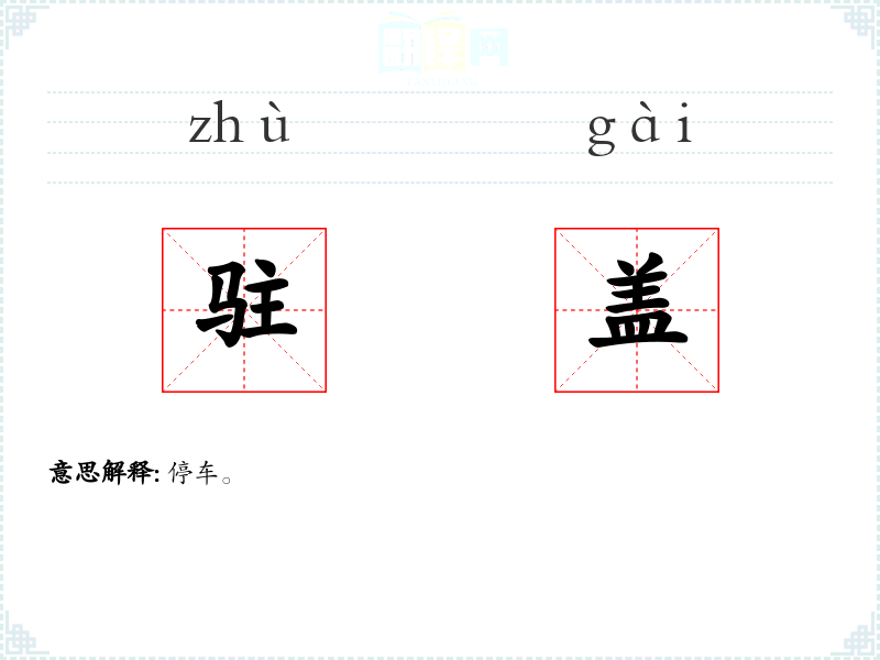 驻盖的分字解释