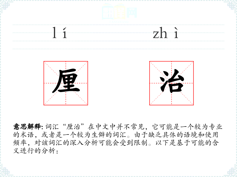 “厘治”作为一个可能的专业术语,强调通过明确和整理来实施治理。在语言学习和表达中,了解这样的词汇有助于扩展专业词汇量,但在日常交流中可能不常用。