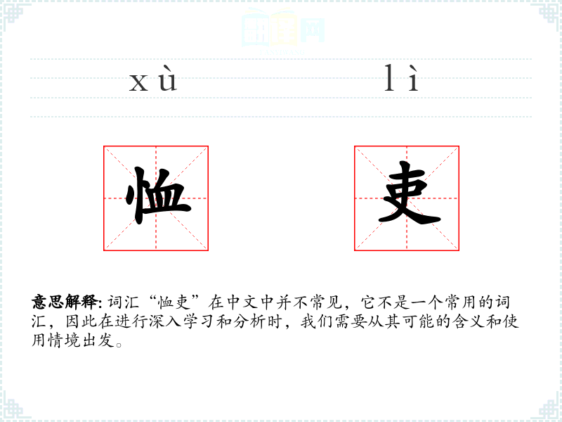 词汇“恤吏”在中文中并不常见,它不是一个常用的词汇,因此在进行深入学*和分析时,我们需要从其可能的含义和使用情境出发。