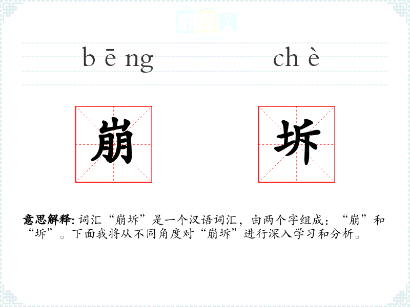 - 词源:“崩”和“坼”都是古代汉语词汇,历史悠久。