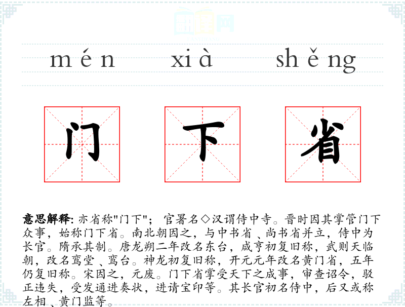 "门下省"的意思解释、门下省是什么意思由翻译网汉语词典查词提供。