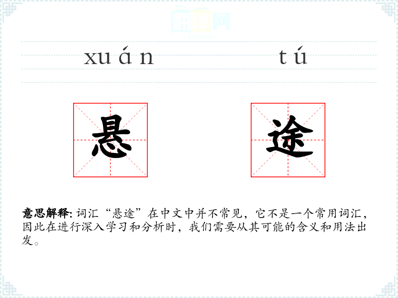 词汇“悬途”在中文中并不常见,它不是一个常用词汇,因此在进行深入学习和分析时,我们需要从其可能的含义和用法出发。