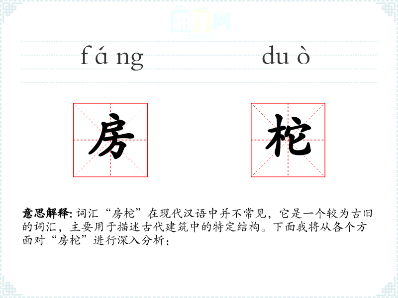 词汇“房柁”在现代汉语中并不常见,它是一个较为古旧的词汇,主要用于描述古代建筑中的特定结构。下面我将从各个方面对“房柁”进行深入分析: