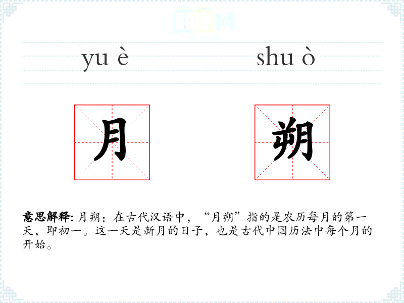 月朔:在古代汉语中,“月朔”指的是农历每月的第一天,即初一。这一天是新月的日子,也是古代**历法中每个月的开始。