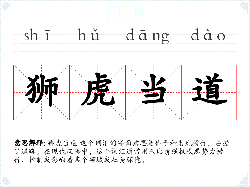 狮虎当道 这个词汇在汉语中是一个非常有力的比喻,用来描述社会中的不公正和权力滥用。了解和掌握这个词汇,不仅有助于更好地理解和分析社会现象,也能在表达时更加生动和有力。