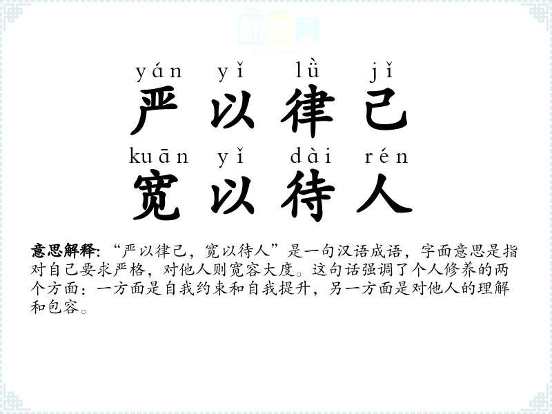 - yán yǐ lǜ jǐ,kuān yǐ dài rén严以律己,宽以待人