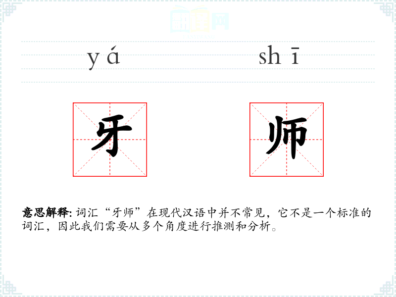 词汇“牙师”在现代汉语中并不常见,它不是一个标准的词汇,因此我们需要从多个角度进行推测和分析。