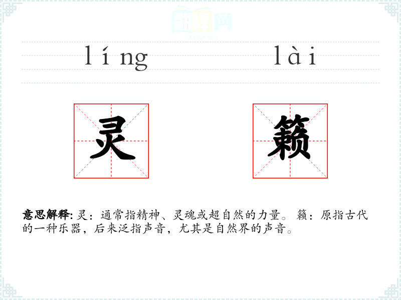 灵:通常指精神、灵魂或超自然的力量。 籁:原指古代的一种乐器,后来泛指声音,尤其是自然界的声音。