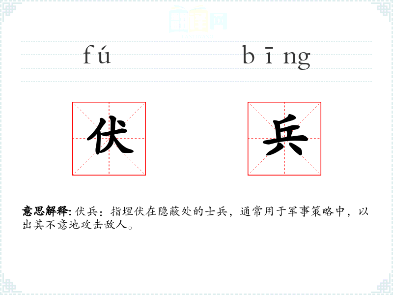 - 专业领域:在军事学和战略学中,“伏兵”是一个专业术语,用于描述一种战术手段。