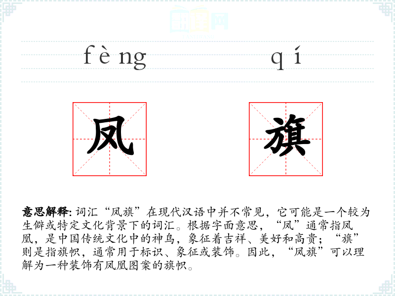 - 理解:凤旗作为一个具有深厚文化背景的词汇,不仅代表了古代的审美和象征意义,也反映了社会等级和价值观念。