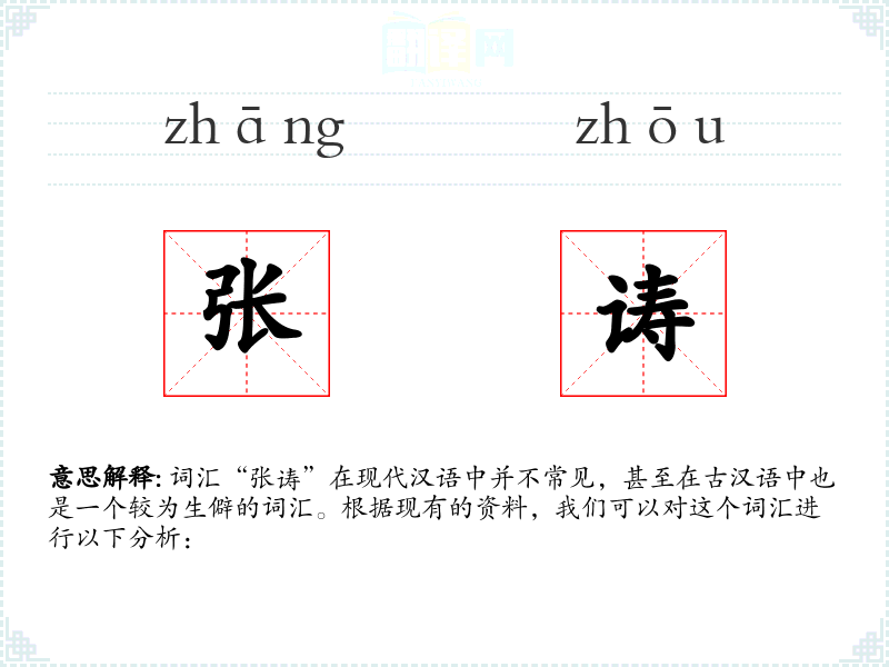 词汇“张诪”在现代汉语中并不常见,甚至在古汉语中也是一个较为生僻的词汇。根据现有的资料,我们可以对这个词汇进行以下分析: