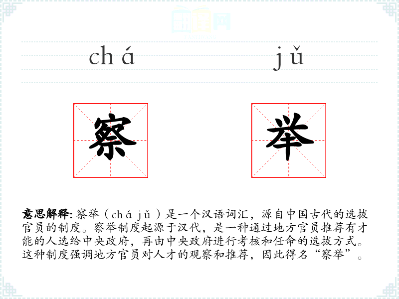 "察举"的意思解释、察举是什么意思由翻译网汉语词典查词提供。