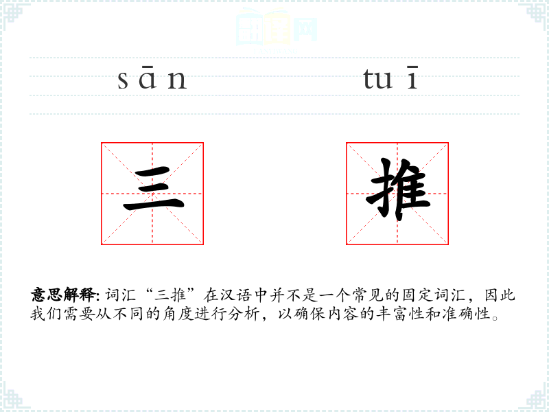"三推"的意思解释、三推是什么意思由翻译网汉语词典查词提供。