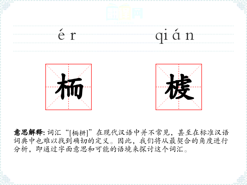 词汇“[栭枅]”在现代汉语中并不常见,甚至在标准汉语词典中也难以找到确切的定义。因此,我们将从最契合的角度进行分析,即通过字面意思和可能的语境来探讨这个词汇。