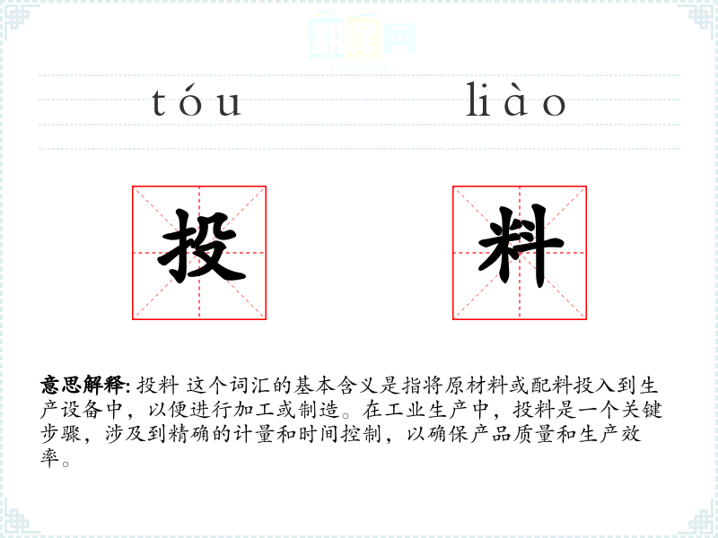 - 文学:在文学作品中,“投料”可能不会直接出现,但可以通过描述生产过程的场景间接体现。