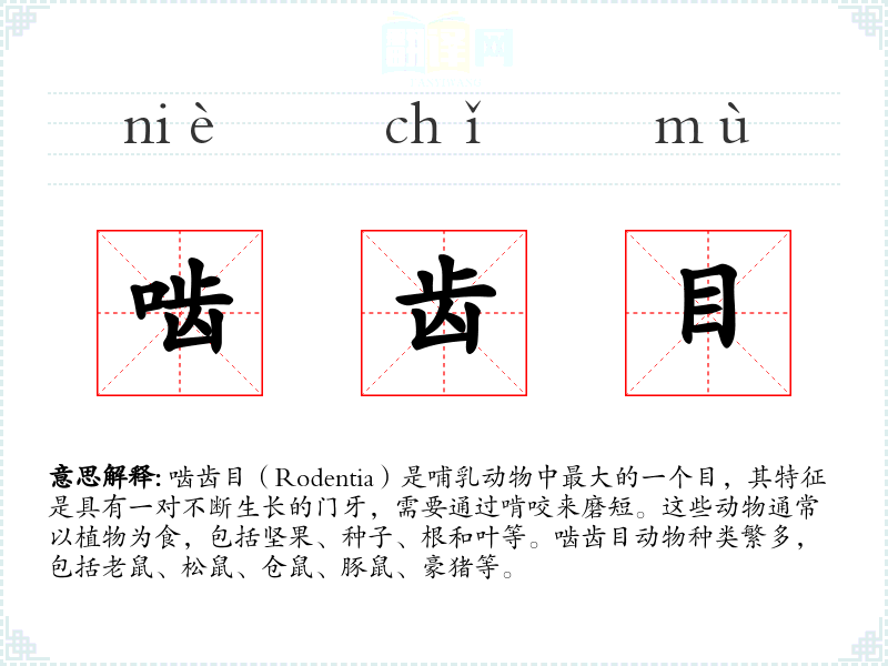 - 同义词:啮齿动物(更口语化)